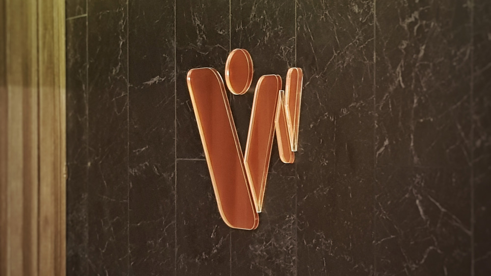 En el interior, hemos utilizado corpóreos en acrílico cristal de 8 mm de espesor, con un fondo que simula el efecto de metal cepillado.